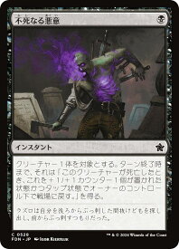 不死なる悪意/Undying Malice (ふしなるあくい) (黒)インスタント FDN, コモンクリーチャー1体を対象とする。ターン終了時まで、それは「このクリーチャーが死亡したとき、これを+1/+1カウンター1個が置かれた状態かつタップ状態でオーナーのコントロール下で戦場に戻す。」を得る。Illus.Igor Kieryluk (528/0)