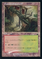 ギルド門通りの公有地/Gateway Plaza (ぎるどもんどおりのこうゆうち)土地 ― 門(Gate) GRN, コモンギルド門通りの公有地はタップ状態で戦場に出る。ギルド門通りの公有地が戦場に出たとき、あなたが(1)を支払わないかぎり、これを生け贄に捧げる。(T):好きな色1色のマナ1点を加える。Illus.Jedd Chevrier (247/259)