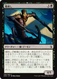 刻み角/Manglehorn (きざみづの) (2)(緑)クリーチャー ― ビースト(Beast) AKH, アンコモン刻み角が戦場に出たとき、アーティファクト1つを対象とする。あなたはそれを破壊してもよい。対戦相手がコントロールするアーティファクトはタップ状態で戦場に出る。2/2Illus.Lius Lasahido (175/264)