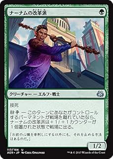 改革派の逃亡/Renegade's Getaway (かいかくはのとうぼう) (2)(黒)インスタント AER, コモンパーマネント1つを対象とする。ターン終了時まで、それは破壊不能を得る。無色の1/1の霊気装置(Servo)アーティファクト・クリーチャー・トークンを1体生成する。(破壊不能を持つパーマネントは「破壊する」と書かれた効果では破壊されない。それがクリーチャーなら、ダメージによっても破壊されない。)Illus.Ryan Yee (69/184)
