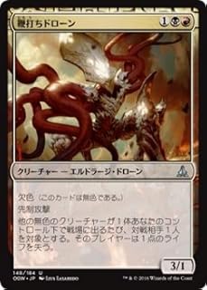 鞭打ちドローン/Flayer Drone (むちうちどろーん) (1)(黒)(赤)クリーチャー ― エルドラージ(Eldrazi)・ドローン(Drone) OGW, アンコモン欠色(このカードは無色である。)先制攻撃他の無色のクリーチャーが1体あなたのコントロール下で戦場に出るたび、対戦相手1人を対象とする。そのプレイヤーは1点のライフを失う。3/1Illus.Lius Lasahido (148/184)