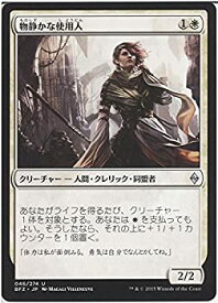 物静かな使用人/Serene Steward (ものしずかなしようにん) (1)(白)クリーチャー ― 人間(Human)・クレリック(Cleric)・同盟者(Ally) J22, アンコモンあなたがライフを得るたび、クリーチャー1体を対象とする。あなたは(白)を支払ってもよい。そうしたなら、それの上に+1/+1カウンターを1個置く。2/2Illus.Magali Villeneuve (241/51)
