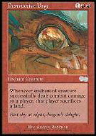 破壊の衝動/Destructive Urge (はかいのしょうどう) (1)(赤)(赤)エンチャント ― オーラ(Aura) USG, アンコモンエンチャント(クリーチャー)エンチャントされているクリーチャーがプレイヤーに戦闘ダメージを与えるたび、そのプレイヤーは土地を1つ生け贄に捧げる。Illus.Andrew Robinson (180/350)