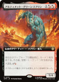 アルティメット・グリーンゴブリン/Ultimate Green Goblin (1)(黒/赤)(黒/赤)伝説のクリーチャー ― ゴブリン(Goblin)・悪人(Villain) SPM, レアあなたのアップキープの開始時に、カード1枚を捨てる。その後、宝物(Treasure)トークン1つを生成する。大混乱(2)(黒/赤)(このターンにあなたがこのカードを捨てていたなら、墓地にあるこれを(2)(黒/赤)で唱えてもよい。タイミングのルールは適用される。)5/4Illus.Jesper Ejsing (276/0)