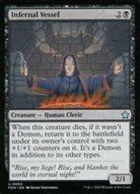 冥府の器/Infernal Vessel (2)(黒)クリーチャー ― 人間(Human)・クレリック(Cleric) FDN, アンコモンこのクリーチャーが死亡したとき、これがデーモン(Demon)でない場合、これをオーナーのコントロール下で+1/+1カウンター2個が置かれた状態で戦場に戻す。これは他のタイプに加えてデーモンである。2/1Illus.Franz Vohwinkel (63/0)