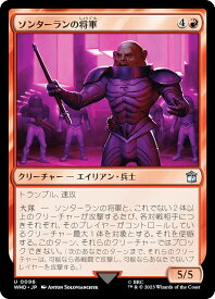ソンターランの将軍/Sontaran General (4)(赤)クリーチャー ― エイリアン(Alien)・兵士(Soldier) WHO, アンコモントランプル、速攻大隊 ― ソンターランの将軍と、これでない2体以上のクリーチャーが攻撃するたび、各対戦相手につきそれぞれ、そのプレイヤーがコントロールしているクリーチャー最大1体を対象とする。それを使嗾する。このターン、それらのクリーチャーではブロックできない。(次のあなたのターンまで、それらのクリーチャーは可能なら各戦闘で攻撃し、可能ならあなたでないプレイヤーを攻撃する。)5/5Illus.Anton Solovianchyk (96/0)