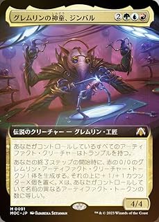 グレムリンの神童、ジンバル/Gimbal, Gremlin Prodigy (ぐれむりんのしんどうじんばる) (2)(緑)(青)(赤)伝説のクリーチャー ― グレムリン(Gremlin)・工匠(Artificer) MOC, 神話レアあなたがコントロールしているすべてのアーティファクト・クリーチャーはトランプルを持つ。あなたの終了ステップの開始時に、赤の0/0のグレムリン(Gremlin)・アーティファクト・クリーチャー・トークン1体を生成する。それの上に+1/+1カウンターX個を置く。Xは、あなたがコントロールしていて名前の異なるアーティファクト・トークンの数に等しい。4/4Illus.Fajareka Setiawan (136/0)