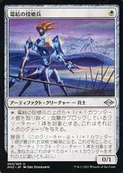 逆刺の針/Barbed Spike (かえりのはり) (1)(白)アーティファクト ― 装備品(Equipment) MH2, アンコモン逆刺の針が戦場に出たとき、飛行を持つ無色の1/1の飛行機械(Thopter)アーティファクト・クリーチャー・トークン1体を生成し、その後逆刺の針をそれにつける。装備しているクリーチャーは+1/+0の修整を受ける。装備(2)Illus.James Paick (5/303)