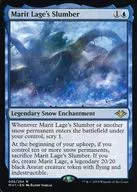 冬の休眠/Winter's Rest (ふゆのきゅうみん) (1)(青)氷雪エンチャント ― オーラ(Aura) J22, コモンエンチャント(クリーチャー)冬の休眠が戦場に出たとき、エンチャントしているクリーチャーをタップする。あなたが他の氷雪パーマネントをコントロールしているかぎり、エンチャントしているクリーチャーはそれのコントローラーのアンタップ・ステップにアンタップしない。Illus.Mila Pesic (374/51)