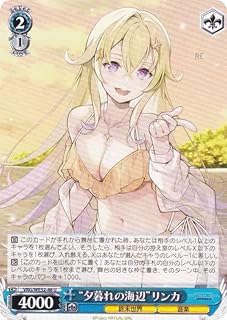 “終末の世界で”片瀬凛(VRG/WE52-45H)-VIRTUAL GIRL @ WORLD’S ENDサイド:種類:キャラレベル:0色:パワー:1500ソウル:コスト:0レアリティ:HUトリガー:-特徴:終末世界・音楽フレーバー:-【永】 他のあなたの、《終末世界》か《音楽》のキャラすべてに、パワーを+500。【自】[このカードを控え室に置く] 他のあなたの、《終末世界》か《音楽》のキャラが舞台から控え室に置かれた時、後列にこのカードがいるなら、あなたはコストを払ってよい。そうしたら、そのキャラをそのキャラがいた枠に【レスト】して置く。