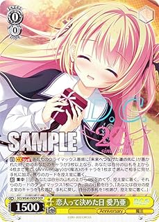 恋人って決めた日 愛乃亜<br>(<br>DC5/WE40-05DCP<br>)<br>-プレミアムブースター D.C.~ダ・カーポ~ 20th Anniversary<br>サイド:<br>種類:キャラ<br>レベル:0<br>色:<br>パワー:1500<br>ソウル:<br>コスト:0<br>レアリティ:DCP<br>トリガー:-<br>特徴:<br>Anniversary・魔法<br>フレーバー:-<br>【自】【CXコンボ】 あなたのクライマックス置場に「未来へつなげた道の先に」が置かれた時、他のあなたのキャラが3枚以上なら、あなたは自分の山札を上から4枚まで見て、《Anniversary》か《魔法》のキャラを1枚まで選んで相手に見せ、手札に加え、残りのカードを控え室に置く。<br>【起】 集中 [(1)] あなたは自分の山札の上から4枚をめくり、控え室に置く。それらのカードのクライマックス1枚につき、次の行動を行う。『あなたは自分の控え室のキャラを1枚選び、手札に戻し、自分の手札を1枚選び、控え室に置く。』