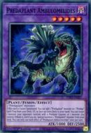 DARK Level 5 [Plant/Fusion/Effect] ATK 1000 DEF 2500 2 "Predaplant" monstersIf this card is Fusion Summoned: You can add 1 "Predaplant" monster or 1 "Predap" Spell/Trap from your Deck, GY, or face-up Extra Deck to your hand. You can target 1 monster your opponent controls with a Predator Counter or 1 monster you control; Tribute it, and if you do, Special Summon 1 "Predaplant" monster from your Deck. You can only use each effect of "Predaplant Ambulomelides" once per turn.
