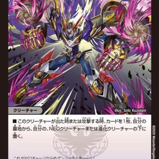 S・トリガー(このカードをシールドゾーンから手札に加える時、コストを支払わずにすぐ実行してもよい)このクリーチャーが出た時、相手のクリーチャーを1体選んでもよい。その選んだクリーチャーとこのクリーチャーをバトルさせる。