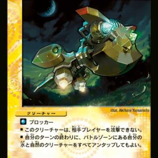 {GS} G・ストライク(このカードを自分のシールドゾーンから手札に加える時、表向きにし、相手のクリーチャーを1体選んでもよい。このターン、そのクリーチャーは攻撃できない)ヌル・ブレイカー(このクリーチャーはシールドを0ブレイクする)