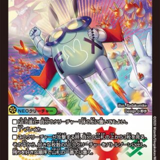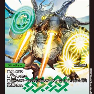 S・トリガーシンカライズ(このタマシードがクリーチャーであるかのように、この上に進化クリーチャーを置いてもよい)このタマシードが出た時、カードを1枚引く。その後、相手のクリーチャーを1体選ぶ。次の自分のターンのはじめまで、そのクリーチャーは攻撃もブロックもできない。自分のコスト8以上のクリーチャーの召喚コストを2少なくする。ただし、コストは0以下にはならない。
