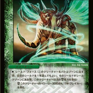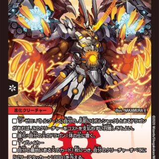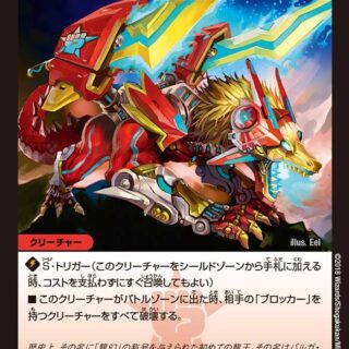 {GS} G・ストライクこのクリーチャーの召喚コストを、自分のマナゾーンにあるドラゴン・カード1枚につき1少なくする。ただし、コストは2以下にはならない。スピードアタッカー(このクリーチャーは召喚酔いしない)スレイヤー(このクリーチャーがバトルする時、バトルの後、相手クリーチャーを破壊する)T・ブレイカーこのクリーチャーが攻撃する時、相手のクリーチャーを1体選んでもよい。その選んだクリーチャーとこのクリーチャーをバトルさせる。