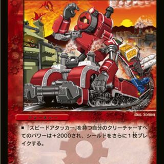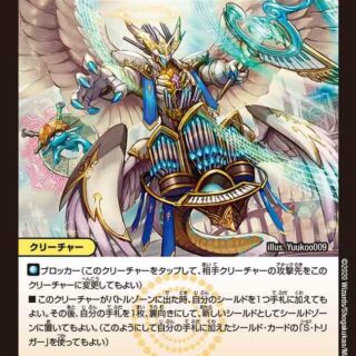 S・トリガーW・ブレイカーこのクリーチャーが出た時、相手のクリーチャーをすべてタップする。相手のターン中に、このクリーチャーが出た時、このターンに2つ以上自分のシールドがブレイクされていなければ、このクリーチャーを破壊する。
