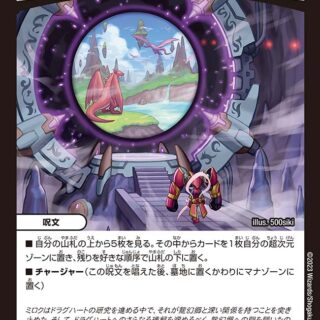 シンカライズ(このタマシードがクリーチャーであるかのように、この上に進化クリーチャーを置いてもよい)このタマシードが出た時、自分の他のエンジェルがあれば、カードを1枚引く。各ターンに一度、自分のコマンド・カードを実行するコストを1少なくしてもよい。ただし、コストは0以下にはならない。
