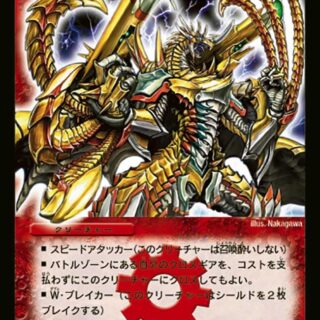 {GS} G・ストライクブロッカーW・ブレイカーこのクリーチャーが出た時、自分の山札の上から4枚を墓地に置いてもよい。その後、このクリーチャーから進化できるコスト8以下のクリーチャーを1体、自分の墓地からこのクリーチャーの上に置いてもよい。