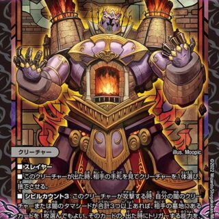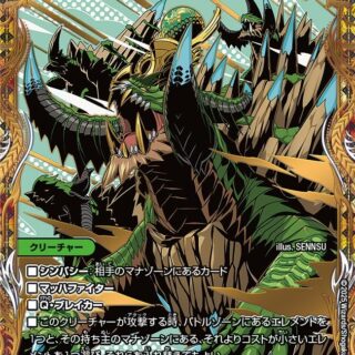 EXライフブロッカーW・ブレイカーこのクリーチャーが出た時、自分の山札の上から2枚をタップしてマナゾーンに置き、その後、カードを2枚まで、自分のマナゾーンから手札に戻す。各ターンはじめて、自分またはこのクリーチャーが攻撃された時、各相手の手札を1枚ずつ見ないで選び、捨てさせる。