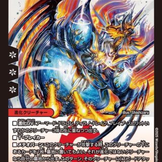 スピードアタッカーこのクリーチャーが出た時、クリーチャーを1体、自分の墓地から手札に戻してもよい。超魂X(これがクリーチャーの下にあれば、そのクリーチャーにも以下の能力を与える)このクリーチャーが攻撃する時、このクリーチャーの下にあるカードを1枚墓地に置いてもよい。そうしたら、相手のシールドを1つ選び、持ち主の墓地に置く。