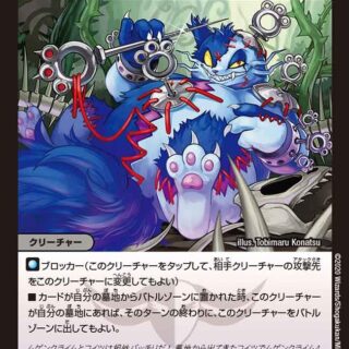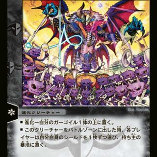 NEO進化:水、闇、または火のクリーチャー1体の上に置いてもよい。W・ブレイカーメテオバーン:このクリーチャーが攻撃する時、このクリーチャーの下にあるカードを1枚墓地に置いてもよい。そうしたら、相手は自身の手札をすべて捨てる。このクリーチャーが破壊された時、相手の手札が1枚もなければ、このクリーチャーを自分の墓地から出してもよい。