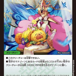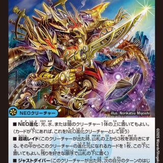 ブロッカー(このクリーチャーをタップして、相手クリーチャーの攻撃先をこのクリーチャーに変更してもよい)このクリーチャーは、相手プレイヤーを攻撃できない。超魂X(これがクリーチャーの下にあれば、そのクリーチャーにも以下の能力を与える)このクリーチャーが攻撃する時、このクリーチャーにカードが3枚以上含まれていれば、相手は自身のアンタップしているクリーチャーを2体選び、タップする。次の相手のターンのはじめに、それらはアンタップしない。
