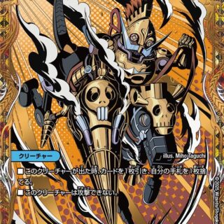 ブロッカー(このクリーチャーをタップして、相手クリーチャーの攻撃先をこのクリーチャーに変更してもよい)自分の、NEOクリーチャーまたは進化クリーチャーが出た時、このクリーチャーを、自分の墓地からそのクリーチャーの下に置いてもよい。