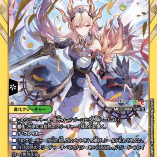 G-NEO進化:水、闇、または火のクリーチャー1体の上に置いてもよい。W・ブレイカーこのクリーチャーが出た時、自分の山札の上から3枚を墓地に置いてもよい。その後、クリーチャーを1体、自分の墓地から手札に戻す。そのクリーチャー以下のコストの相手のクリーチャーを1体選び、破壊する。これが進化クリーチャーなら、自分のクリーチャーすべてに「スピードアタッカー」を与え、それらはすべてブロックされない。
