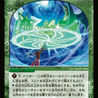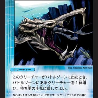 ジャストダイバー(このクリーチャーが出た時、次の自分のターンのはじめまで、このクリーチャーは相手に選ばれず、攻撃されない)このクリーチャーが出た時、各プレイヤーは、自身の手札を1枚選び、捨てる。その後、自分はカードを2枚引く。