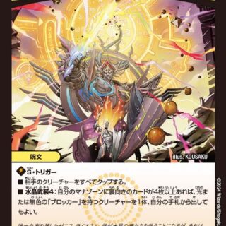 ブロッカー(このクリーチャーをタップして、相手クリーチャーの攻撃先をこのクリーチャーに変更してもよい)T・ブレイカーこのクリーチャーが出た時、次の自分のターンのはじめまで、相手はコスト4以下のクリーチャーを召喚できない。