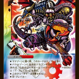 ブロッカージャストダイバーW・ブレイカーこのクリーチャーが出た時、水または闇の、コスト7以下の呪文を1枚、自分の手札または墓地からコストを支払わずに唱えてもよい。そうしたら、それを唱えた後、墓地のかわりに自分の超次元ゾーンに置く。このクリーチャーが攻撃する時、呪文を1枚、自分の超次元ゾーンからコストを支払わずに唱えてもよい。そうしたら、それを唱えた後、墓地のかわりに山札の下に置く。