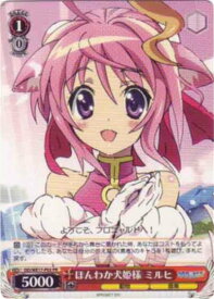 姫殿下 ミルヒ<br>(<br>DD/WE12-53<br>)<br>-PRカード【Wサイド】<br>サイド:<br>種類:キャラ<br>レベル:1<br>色:<br>パワー:5000<br>ソウル:<br>コスト:0<br>レアリティ:PR<br>トリガー:-<br>特徴:<br>動物・音楽<br>フレーバー:私たちが見つけて、私が迷う事なくこの人と決めた……この国の、勇者様です!<br>【永】 あなたのストックが4枚以下なら、このカードのパワーを+1000。
