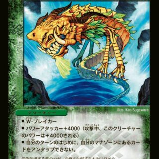 S・トリガー次のうちいずれか1つを選ぶ。▶相手のパワー6000以下のクリーチャーを1体選び、破壊する。その後、相手のクリーチャーをすべてタップする。▶光または火の、コスト7以下のドラゴン・クリーチャーを1体、自分の手札から出す。次の自分のターンのはじめまで、そのクリーチャーに「ブロッカー」を与える。その後、相手のクリーチャーを1体選んでもよい。その2体をバトルさせる。