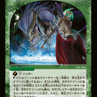 S・トリガー自分の山札の上から3枚を表向きにする。その中から光のクリーチャー、自然のクリーチャーを1体ずつ手札に加えてもよい。残りを好きな順序で山札の下に置く。その後、光または自然の、コスト3以下のクリーチャーを1体、自分の手札から出してもよい。次の自分のターンのはじめまで、そのクリーチャーに「ブロッカー」を与える。