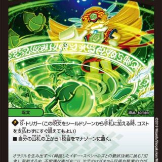 ニンジャ・ストライク 7(相手のクリーチャーが攻撃またはブロックした時、自分のマナゾーンにカードが7枚以上あり、その攻撃中に「ニンジャ・ストライク」能力を使っていなければ、このシノビをコストを支払わずに召喚してもよい。そのターンの終わりに、このシノビを山札の下に置く)W・ブレイカーこのクリーチャーが出た時、自分の墓地にあるカードをすべて山札に加えてシャッフルする。その後、自分の山札の上から1枚目をシールド化する。次の自分のターンのはじめに、自分のシールドを1つ、マナゾーンに置く。