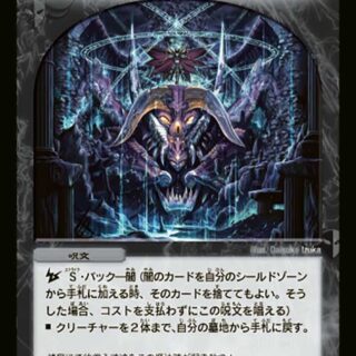 S・トリガー(このクリーチャーをシールドゾーンから手札に加える時、コストを支払わずにすぐ召喚してもよい)このクリーチャーが出た時、次のうちいずれか1つを選ぶ。▶相手のコスト6以下のエレメントを1つ選び、持ち主のマナゾーンに置く。▶自分の山札の上から1枚目をシールド化する。