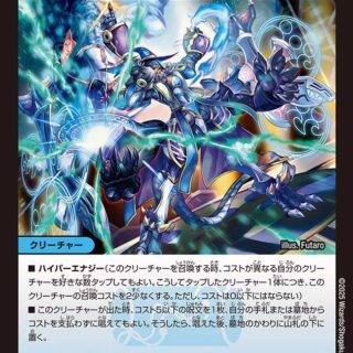 ブロッカーW・ブレイカー各ターン、はじめて自分の超化獣が出た時、相手のクリーチャーを1体選び、タップする。次の相手のターンのはじめに、そのクリーチャーはアンタップしない。ハイパー化:自分の他のクリーチャーを1体タップする。