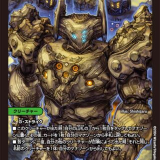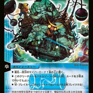 ブロッカーW・ブレイカーエスケープヨビニオン(このクリーチャーが召喚によって出た時、自分の山札の上から、これよりコストが小さいクリーチャーが出るまで表向きにしてもよい。そのクリーチャーを出す。残りをシャッフルし、山札の下に置く)各ターン、はじめて自分の手札から召喚して出した他のクリーチャーに、そのターン「ヨビニオン」を与える。