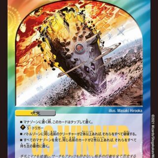 S・トリガーコスト7以下の超化獣クリーチャーを1体、自分の手札から出してもよい。次の自分のターンのはじめまで、そのクリーチャーのハイパーモードを解放し、「ブロッカー」を与える。
