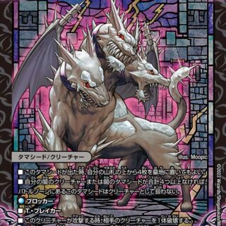 自分の墓地にクリーチャーではないカードが4枚以上あれば、このクリーチャーの召喚コストを90少なくする。EXライフスピードアタッカーT・ブレイカー相手は光ではない呪文を唱えられない。自分のターンの終わりに、クリーチャーを1体、自分の手札から出してもよい。