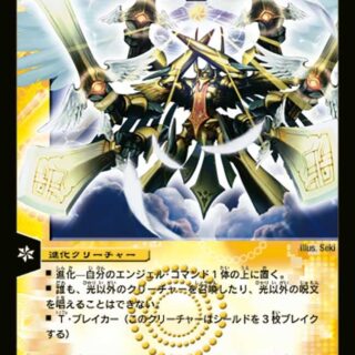 マナゾーンに置く時、このカードはタップして置く。マナ進化:デーモン・コマンドを1体自分のマナゾーンから選び、このクリーチャーをその上に重ねつつバトルゾーンに出す。T・ブレイカーこのクリーチャーがバトルゾーンに出た時、デーモン・コマンド以外のクリーチャーをすべて破壊する。相手のクリーチャーがコストを支払わずにバトルゾーンに出る時、相手はそのクリーチャーをバトルゾーンのかわりに自身のマナゾーンに置く。