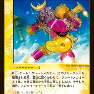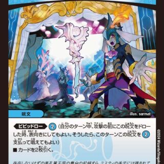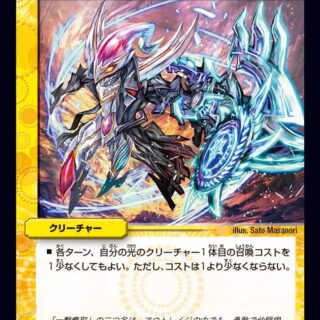 S・トリガー(この呪文をシールドゾーンから手札に加える時、コストを支払わずにすぐ唱えてもよい)自分の手札を1枚捨てる。こうして捨てた手札以下のコストを持つ相手のエレメントを1つ選び、破壊する。