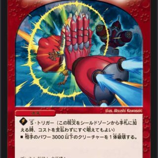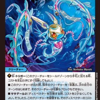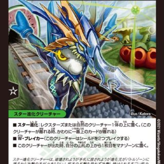 このクリーチャーを、 {nn02}を支払って召喚してもよい。そうしたら、このクリーチャーが出た時、相手は自身の山札の上から1枚目をマナゾーンに置いてもよい。W・ブレイカー(このクリーチャーはシールドを2つブレイクする)