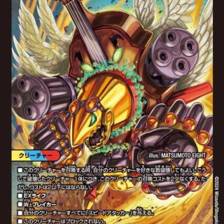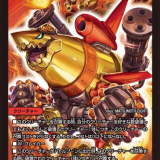 このクリーチャーが出た時、バトルゾーンまたはマナゾーンに自分のジョーカーズが合計5枚以上あれば、カードを2枚引く。その後、ジョーカーズを1枚、自分の手札から捨ててもよい。そうしたら、カードを2枚引く。