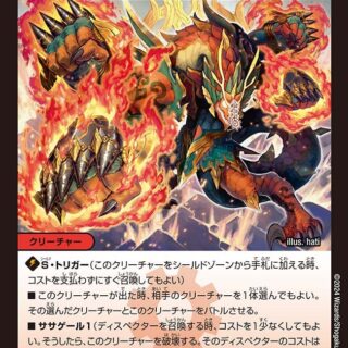 {GS} G・ストライク(このクリーチャーを自分のシールドゾーンから手札に加える時、表向きにし、相手のクリーチャーを1体選んでもよい。このターン、そのクリーチャーは攻撃できない)スピードアタッカー(このクリーチャーは召喚酔いしない)このクリーチャーが出た時、自分の山札の上から1枚目をマナゾーンに置く。