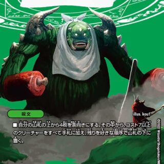 自分の山札を見る。その中から多色クリーチャーを1体選んで表向きにし、手札に加えてもよい。その後、山札をシャッフルする。