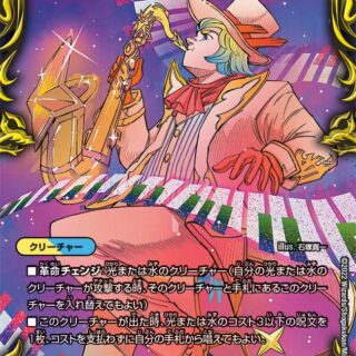 シンカライズ:このタマシードがクリーチャーであるかのように、この上に進化クリーチャーを置いてもよい。このタマシードが出た時、自分の山札の上から3枚を墓地に置いてもよい。そうしたら、水または闇のカードを1枚、自分の墓地から手札に戻す。各ターン、はじめてカードが自分の墓地から離れた時、次のうちいずれか1つを選ぶ。▶相手は自身の手札を1枚選んで捨てる。▶カードを1枚引く。