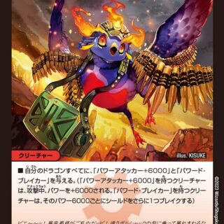 光臨:自分のターンの終わりに、このクリーチャーがタップされていれば、自分の山札を見る。その中からコスト6以下のスノーフェアリー・クリーチャーを1体、出してもよい。その後、山札をシャッフルする。