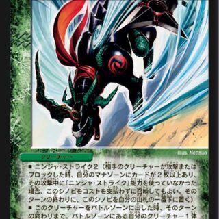 スピードアタッカー(このクリーチャーは召喚酔いしない)このクリーチャーが破壊された時、アーマード・メクレイド8する。(アーマード・メクレイド8:自分の山札の上から3枚を見る。その中から、コスト8以下のアーマードを1枚、コストを支払わずに使ってもよい。残りを好きな順序で山札の下に置く)